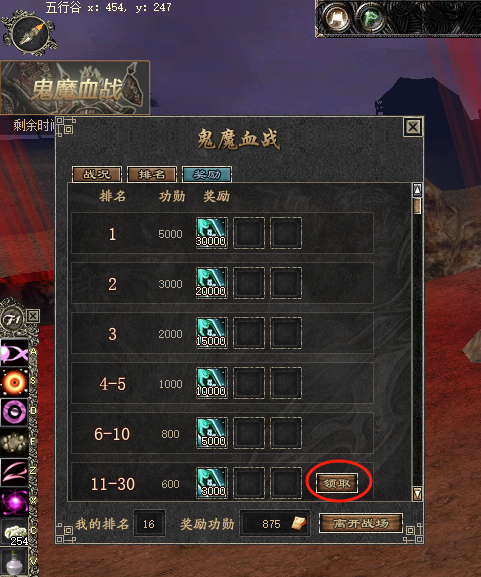 3、进入活动地图,可点击鬼魔血战查看当前战况、排名、奖励;