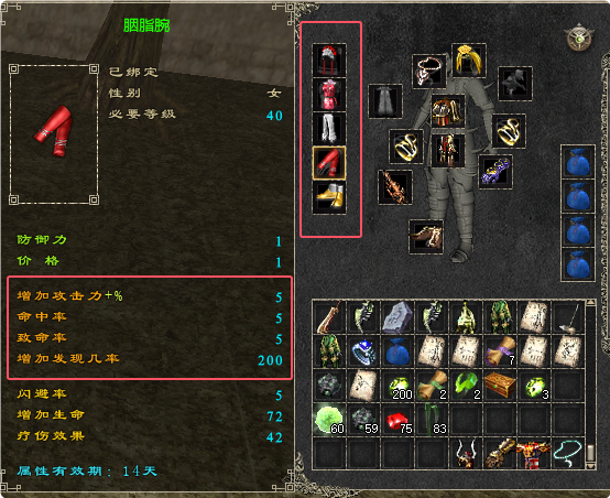 ・套装属性一般都会远远高于普通装备,套装有新手套装、30套装、60套装、90套装、120套装、150套装、180套装,其中新手套装在角色达到3级时可在游戏界面右上角购买,其他套装均由对应副本产出。