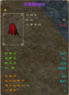 ・角色达到122级可穿戴披风,披风亦可升星来提高属性值;