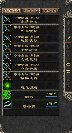 ・武功学习后会出现在对应的武功列表中,可拖动武功放置到左边快捷栏和右下角攻击武功栏、辅助武功栏,右键点击即可对目标施展武功;